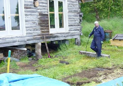 Next up was a trip upriver to Hook-M-Up for an overnighter. On the way, we stopped at Omar's log home to check the status of the duck population. The dash from the river to Omar's log house couldn't be completed quick enough to totally avoid the effects of his bumper mosquito crop. Some talk about ruddy ducks ensued, which this humble editor believes is code for something completely different. As Omar started to press for details of the gold panning plans, it was decided to move on rather then risk exposing too much information. Arrival at Hook-M-Up was a couple hours later. The quality of mosquitoes in camp actually exceeded the pre-trip billing. Lighting a few piques and repair of some windows mitigated that nuisance quickly however, and a few of the crew proceeded to the Holukuk confluence to try their luck at fishing and gold panning. There was not much action on the fishing front, however the search for gold proved to be another matter. Obviously we can't delve much into the classified details here, but suffice it to day that Storm found enough to amount to a bounty never heard before in these parts. Lisa cooked up some excellent tundra beef the next morning after which the troops headed back to Crow.