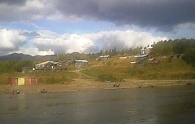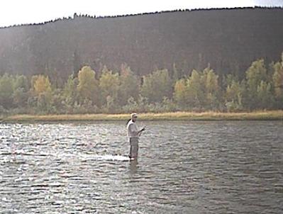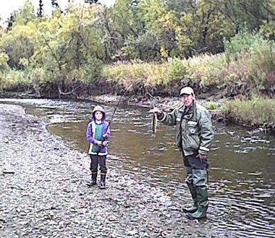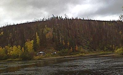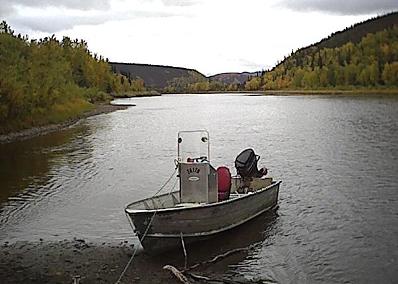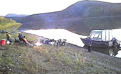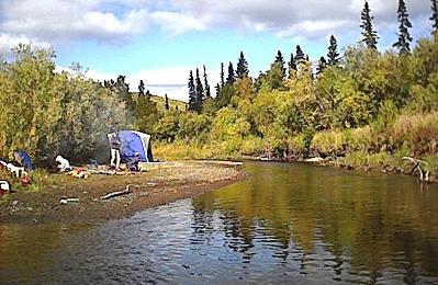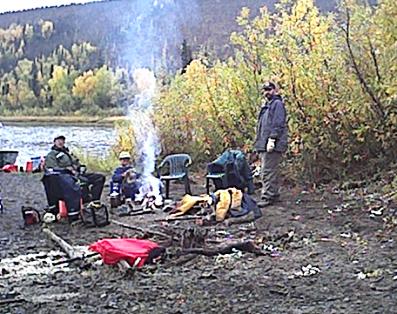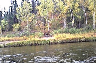 Every thing was now set for the camping trip that hopefully would produce the desired moose, but the schedule was tight. The trip would be up the very scenic George river which is about 80 miles upstream from Aniak. Two boats would make the major portion of the trip since the jet-unit was not capable of significant load capacity. Father Maichi was scheduled to join as well, and he planned to drive separately. Tom and Dakota were to leave early with the jet-unit since it's speed was slower, and the rest would depart once the kids were out of school and David was done with work. Some mechanical issues delayed Tom's departure but other then that, everything was on schedule. The second boat caught up to Tom and Dakota at Napaimute, and everybody gassed up. Around 8 pm, the fast boat passed Crooked Creek, and a fine camping spot was picked out just past there to spend the night. David showed up in the jet-unit about an hour later. There was till no sign of Father Maichi. Both boats took of for Georgetown the next morning after camp was broke. Georgetown would be the staging area, since from that point travel was up the George River which was only passable with the jet unit and several trips were required to ferry all the people and gear. Bob, Ann and Richard were very hospitable during that staging operation, and low and behold, Father Maichi showed up in time to join in.