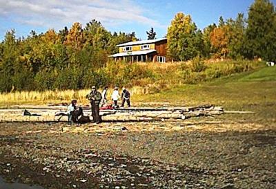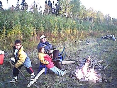 The campsite chosen was about 15 to 20 miles up the George River. It was a very scenic and protected spot on a small island. Tom and Dakota spent many hours fishing, the kids built a nice stick house, and Lisa prepared some campsite meals. Several trips were taken farther up the river looking for that ever so elusive moose. After 2 days, it was time to head back. No moose was ever spotted, but it was a spectacular camping trip none-the-less. This place will most certainly be visited again. People and gear were ferried back to Georgetown, and after some refreshing coffee and "Georgetown nuggets", the trip back to Crow Village commenced. Stops were made at Crooked Creek and Napaimute. Extra time was spent at Napaimute consulting with Mark Leary and Senator Lyman Hoffman on various computer issues, and getting a quick fix of internet via their starband service (complimentary this time due to the consultancy work). We got the executive tour of all the recent improvements in the village, including Senator Hoffman's hot tub. The Aniak destination was reached just before 6pm just in time to purchase some more fuel required to reach Crow Village. A regular meal at the Aniak Lodge was readily consumed by all. The final day of the trip was spent working on the new restaurant (The Drift Net) scheduled to open this fall. Enjoy the pictures below.