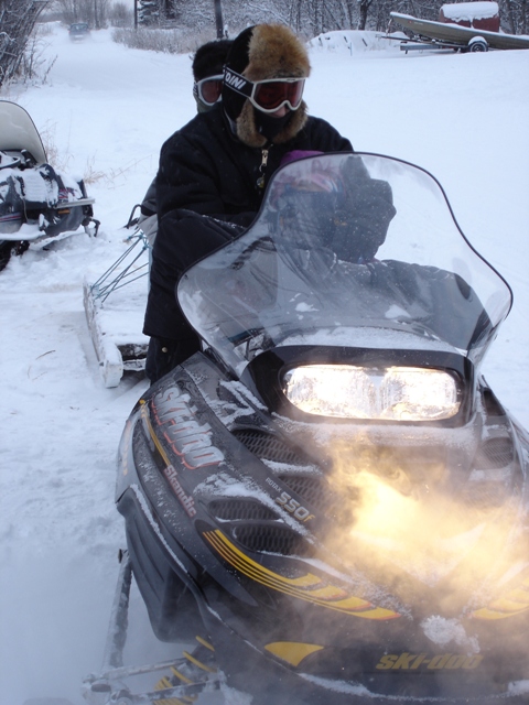 Although Thanksgiving morning was -36, the weather cooperated for Thea and LuLu's Thanksgiving 0 Five visit to Crow Village. Snow was abundant. The addition of the Ski-Do to the line up of snowmachines is splendid. That is the only sled LuLu liked to ride on—I think it was more the driver (Uncle David) that she appreciated than the machine itself, nonetheless, that was her preference. Her Auntie Lisa would squish her too much when she drove her.